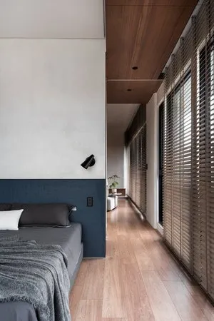 運用建築12米陽台的優勢與西北向的午後陽光,將廊道搬至落地窗邊,使引入室內的光線與綠意持續延伸到臥房,更添幾分舒適。
